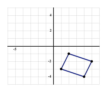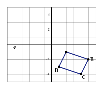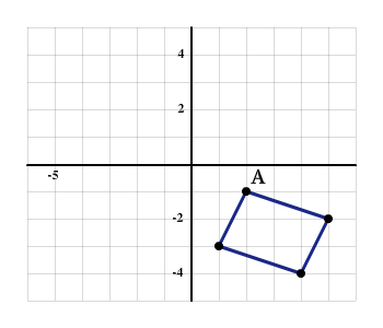 To reflect the quadrilateral across the y-axis, I count how far point A is to the right of the y-axis. Then to find the reflected point, I move point A that far left of the y-axis.